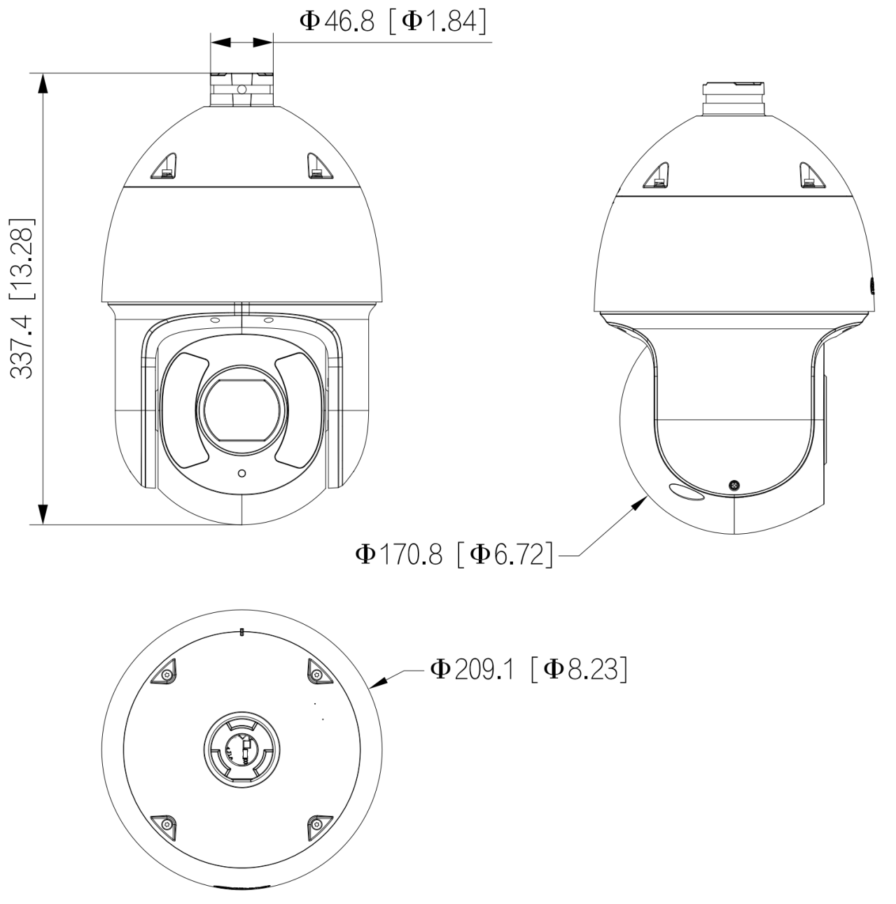 Φ209.0mm×337.4mm (Φ8.23" × 13.28") |
