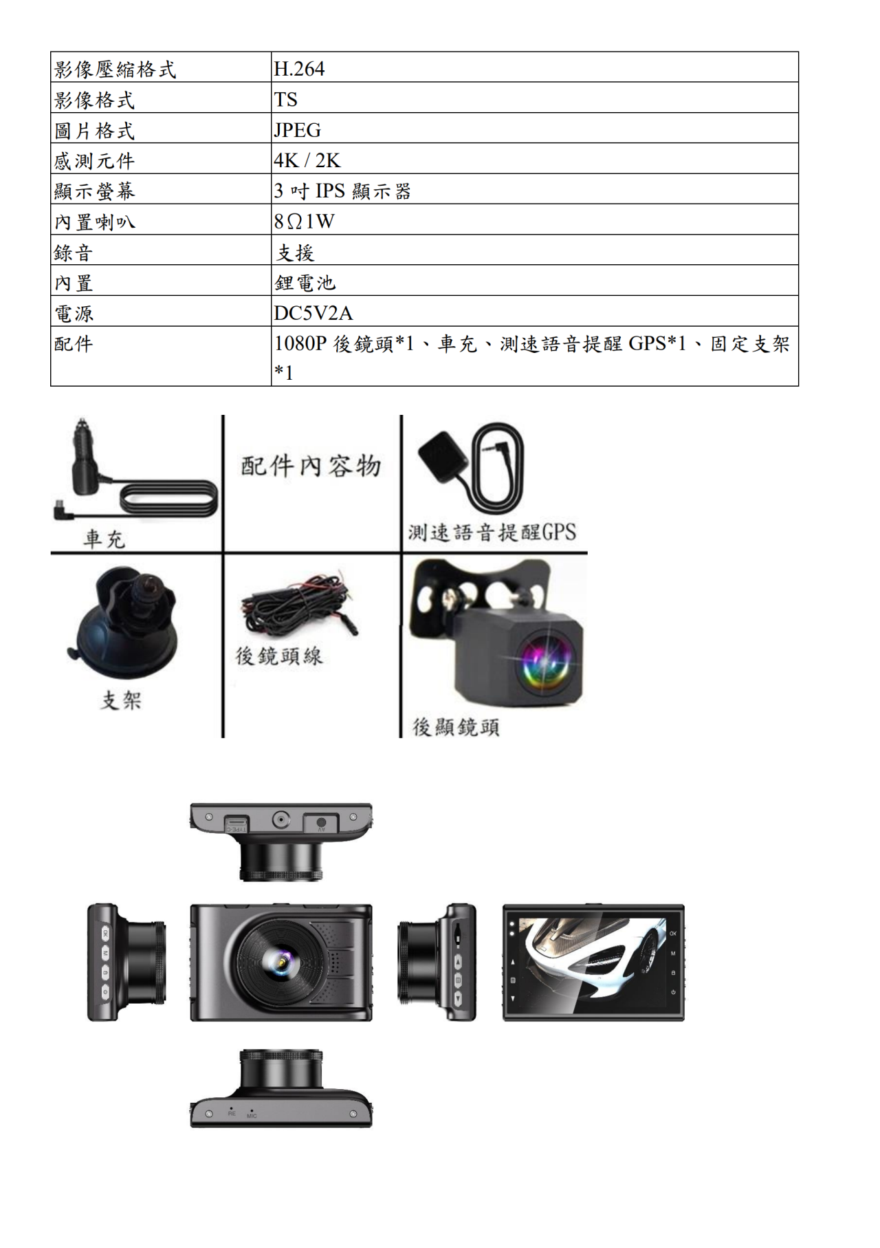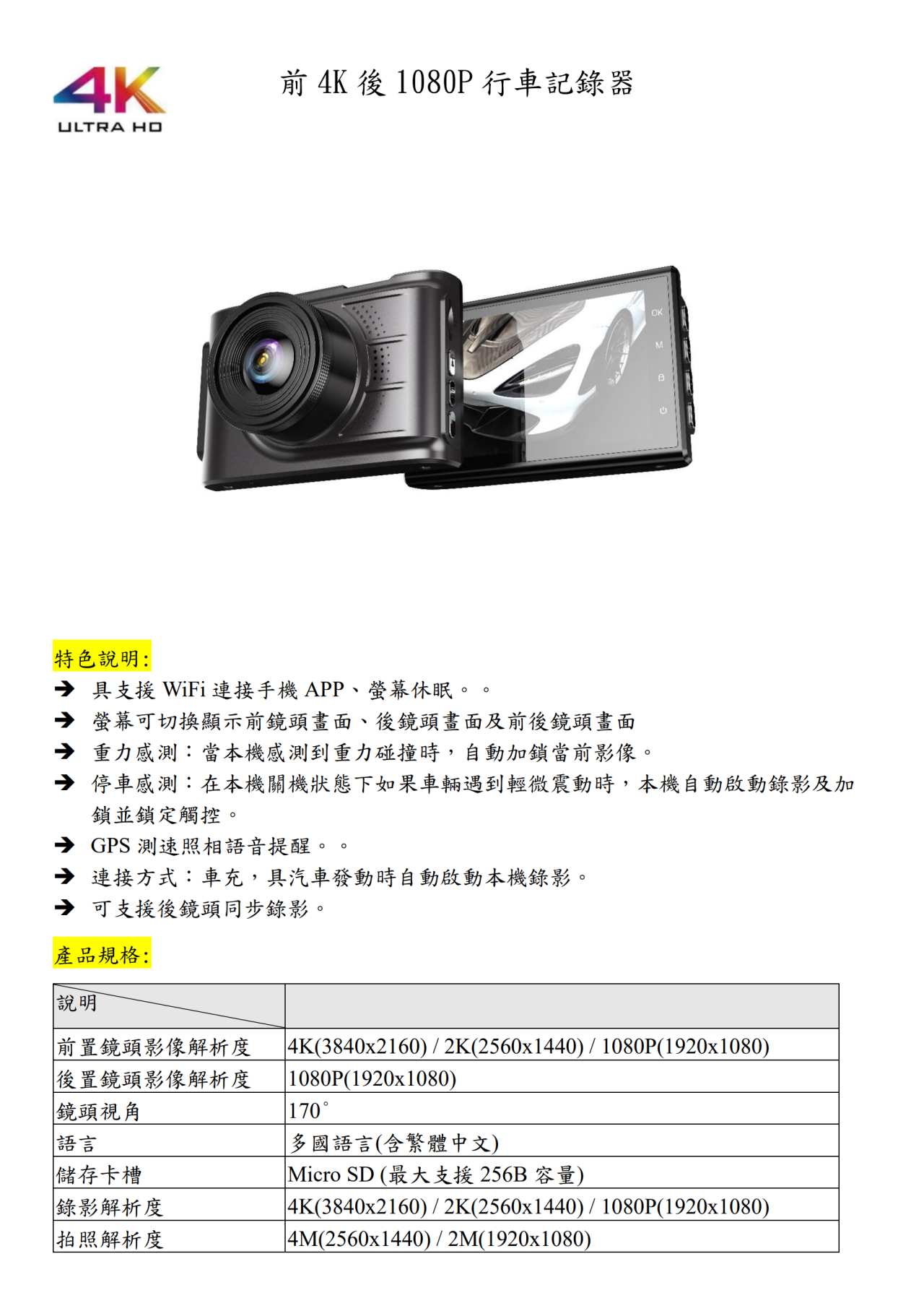 前4K 後1080P 高清 高畫質 3吋 行車紀錄器