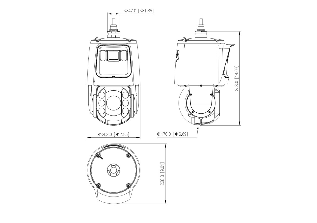 358 mm (14.09 in) × Φ202mm (7.95 in) |