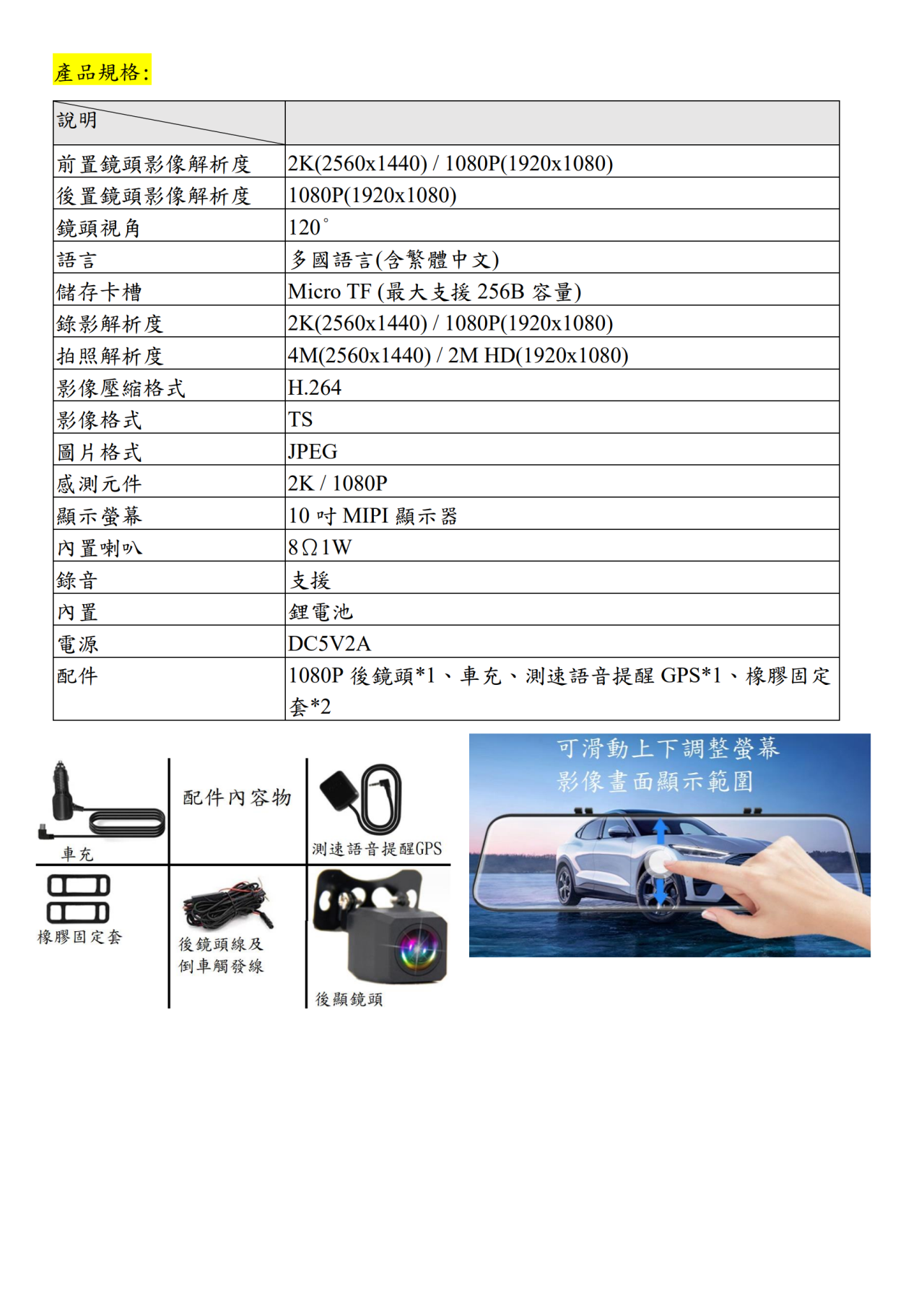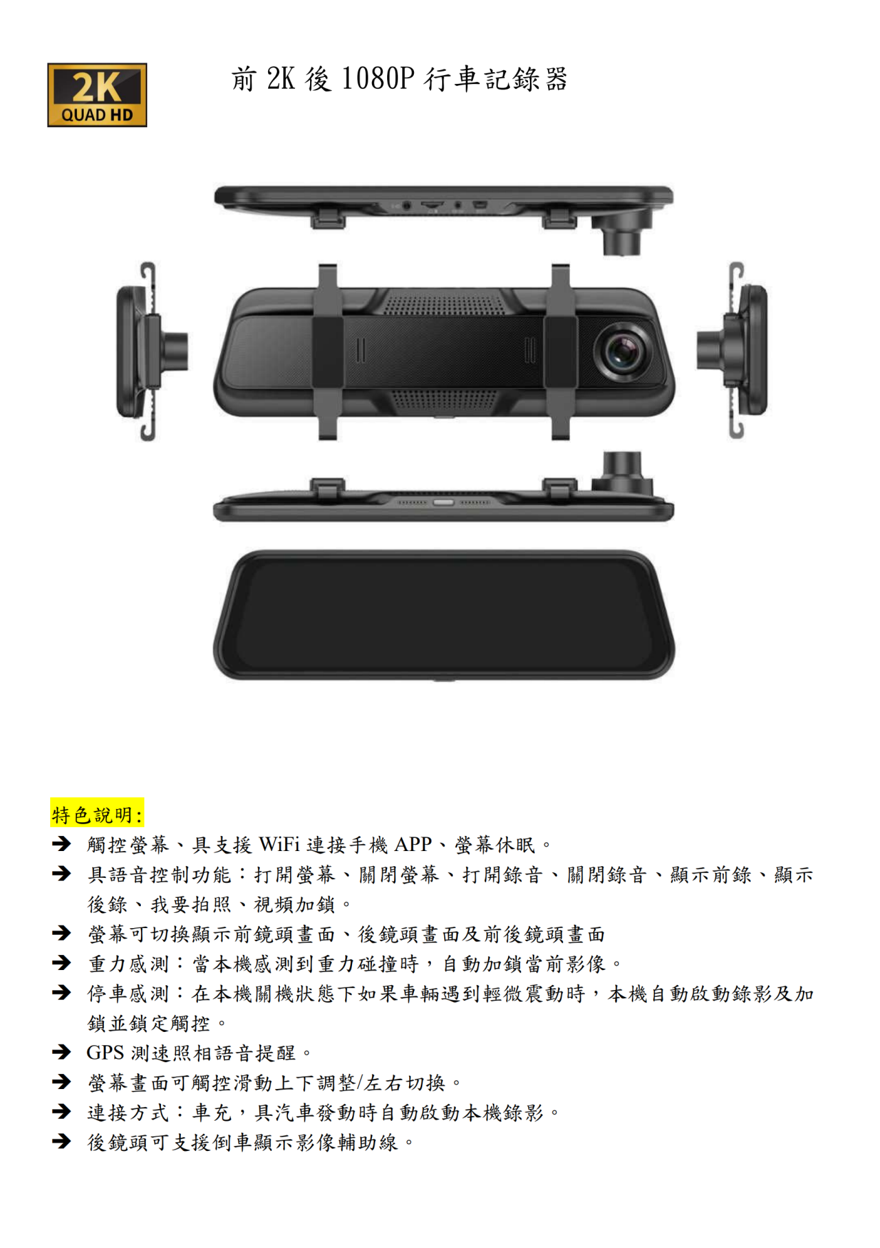 前2K 後1080P 高清 高畫質 10吋 後照鏡 行車紀錄器
